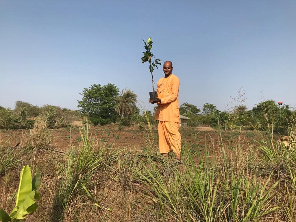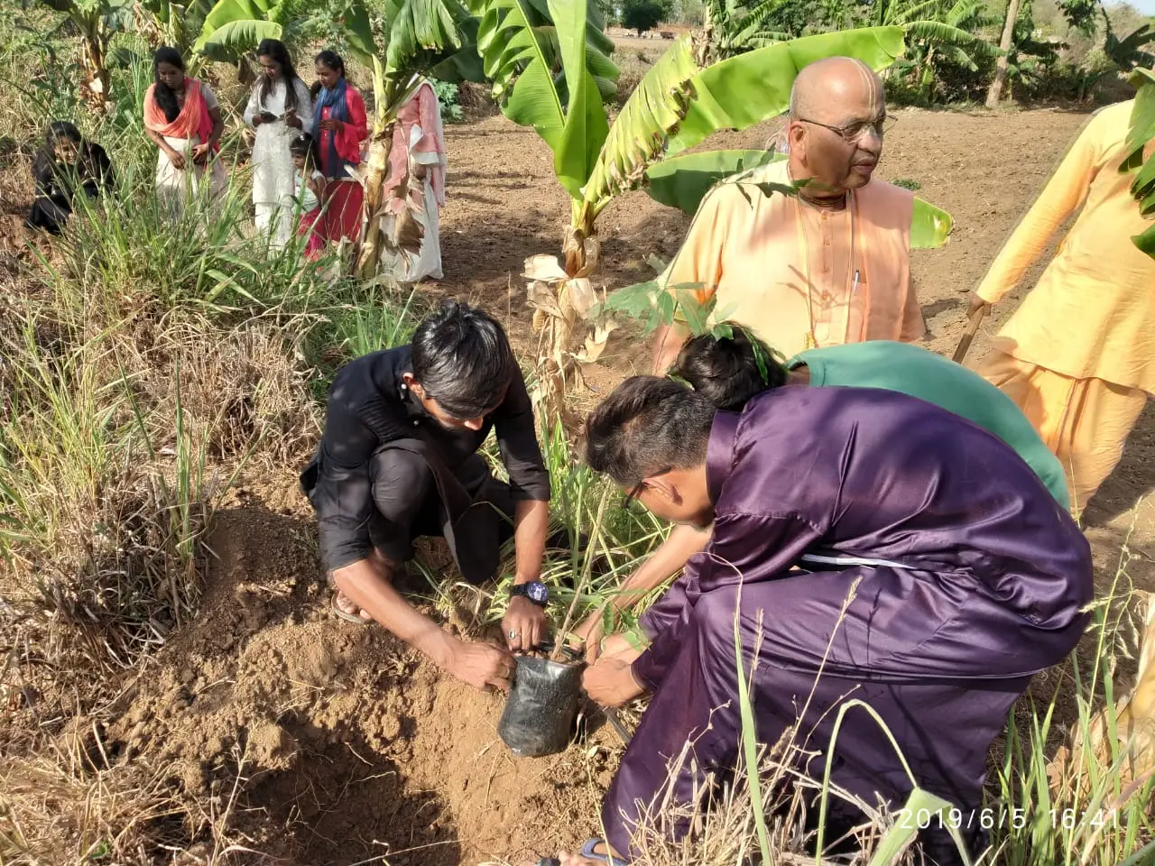 This is what the purpose of our every act as a human being should be, i.e. to please Supreme Lord. Although devotees planting trees may look similar to the mundane tree plantation ceremony, their purpose is entirely different. Actually, this is how the world can achieve peace and harmony, pleasing God rather than trying to satisfy our own mind and ego.