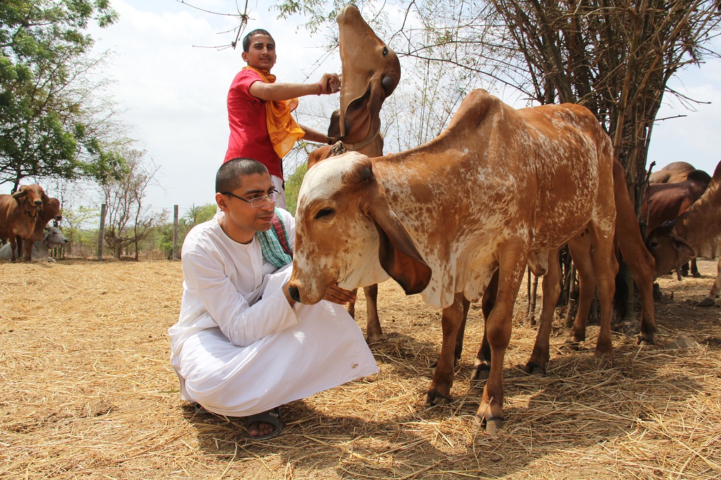We drink the milk of our mother for two three years but we drink the milk of mother cows for whole life. From childhood I have done all the service of mother cows. I congratulate all of you for taking care of these so many cows very nicely. I am very fortunate to get the opportunity to come at this beautiful place. We will be part to make this beautiful place cultural centre. Thank you very much . Hare Krishna…
