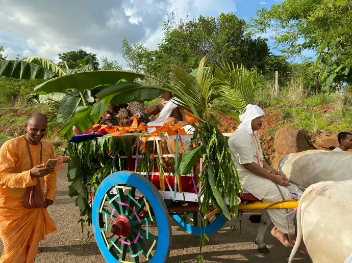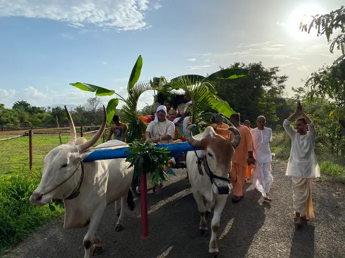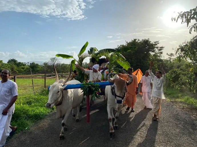 Sri Sajjan Jindal -Chairman of JSW Group glorified mother cow as "Hare Krishna…Today is very special day-Gopastami. Today Lord Krishna started serving the cows and we worshiped cows at this place. After coming at this beautiful place I am feeling that I have comeback to real Village. I am thankful to ISKCON for reviving this village and our culture in city. I always tell my children about the importance of the cows. Cows are alway there in our house and I have spent lots of time with cows. and I am thankful to devotees of ISKCON that they called me and shown me this wonderful place Today. Hare Krishna…"
