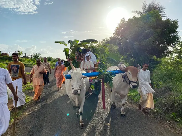 On the occasion of Gopastami they worshiped the mother cows and fed them banana, grass and jaggery. Gopastami is the day when Supreme Lord Krishna started herding cows. On this auspicious occasion they gave short talk by glorifying the importance of mother cows.