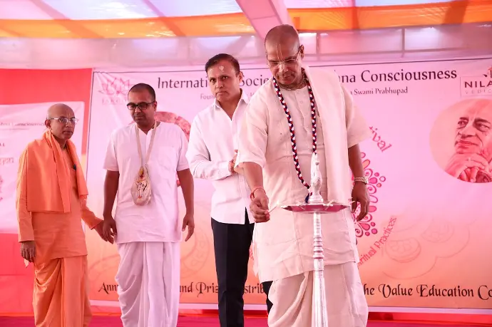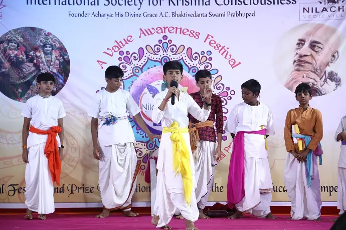 Purpose of the Nilachal Utsav was a Value Awareness Program for “Building nation through inspiring character in children”. Almost fifteen hundred children and principals of different schools have attended this event. Among the chief guests were HH Gopal Krishna Goswami (GBC-ISKCON & BBT Trustee), Sri LN Kaushik (President, Welspun Vapi), Sri Saurav Chakrabarti (Bollywood Actor), Sri Raj Logani (Bollywood Actor) and Madhav (Bollywood Actor). At the end of the event prize was distributed to the winners of the Value Education Contest-2019.